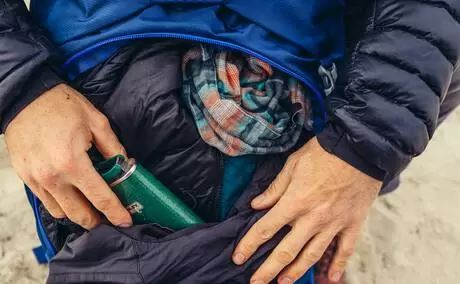 - Zgornji žep na zadrgo z odsevnimi trakovi za vidnost ponoči sponko za ključe in notranjim varnostnim žepom na zadrgo.